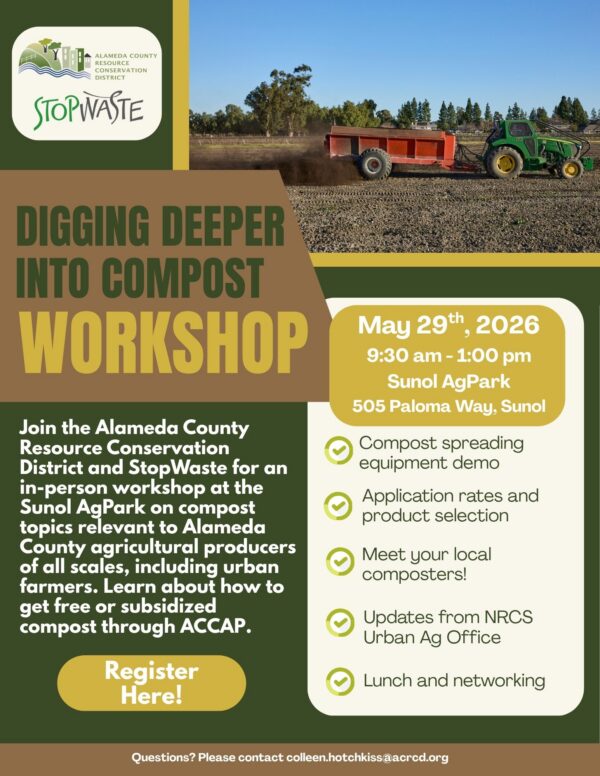 Alameda County farmers and ranchers interested in applying for NRCS programs, email Veronica Rivera at veronica.rivera@usda.gov for general farming and ranching, and Annie Edwards at annie.edwards@usda.gov for urban farming.