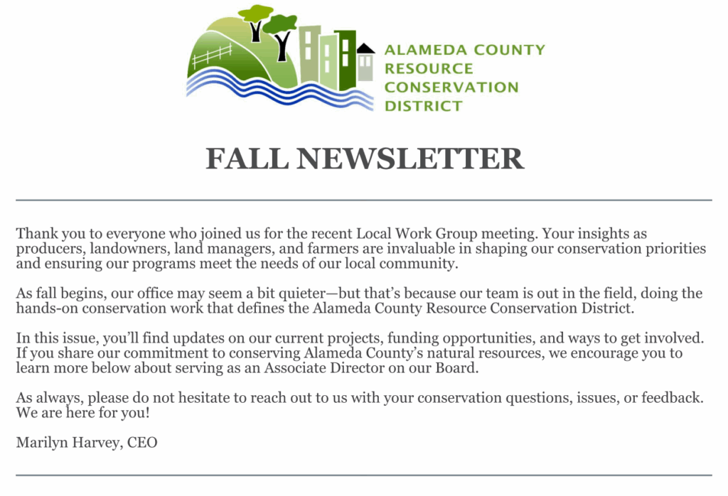 The Alameda County Conservation Partnership provides technical and educational services for natural resource conservation and agriculture enhancement. We are excited to share our current projects, workshops and how we are making conservation happen in Alameda County!